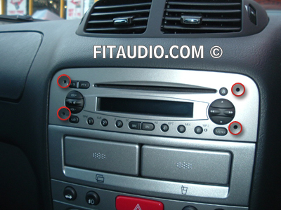 - Вставьте ключи разблокировки в отверстия на каждой стороне радио (красные круги)